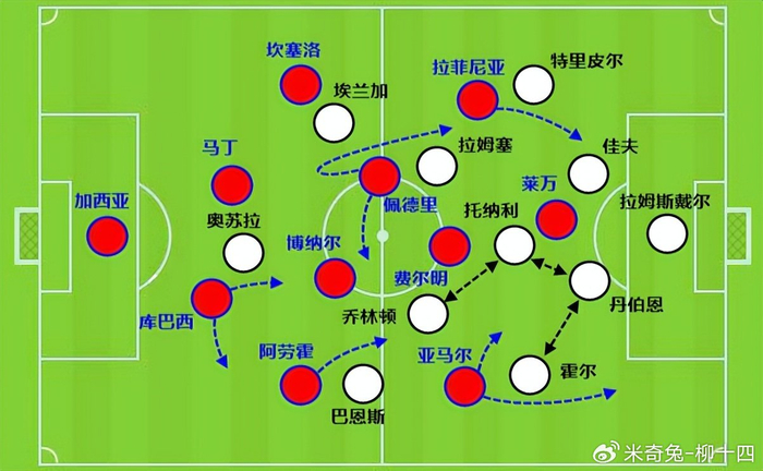 当时在阿劳霍没有回来的情况下,是拉菲尼亚补了右后卫的位置。需要特别注意的是,他俩其实是这支巴萨对抗和冲刺跑能力最强的球员。