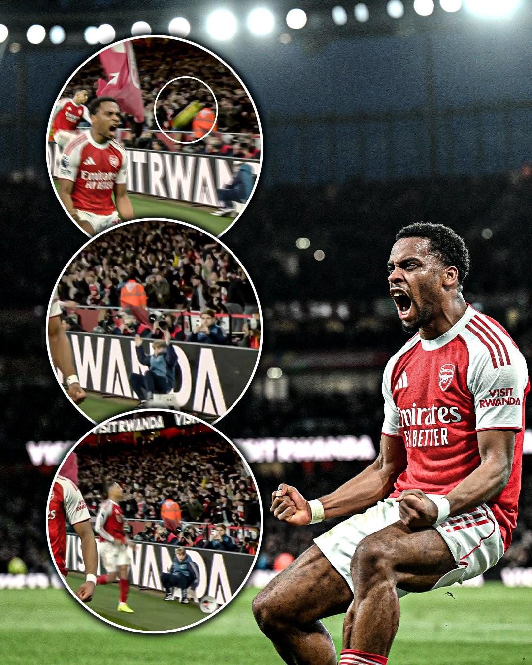 英超联赛第28轮,枪手在酋长球场2-1战胜到访的切尔西。下半场比赛第65分钟,廷贝尔接赖斯角球传球后头球破门。随后,阿森纳球员们来到角旗杆附近忘情庆祝,萨利巴在途中将场边的备用球踢上了看台,甚至还踢翻了球托,这令场边的小球童懊恼不已。