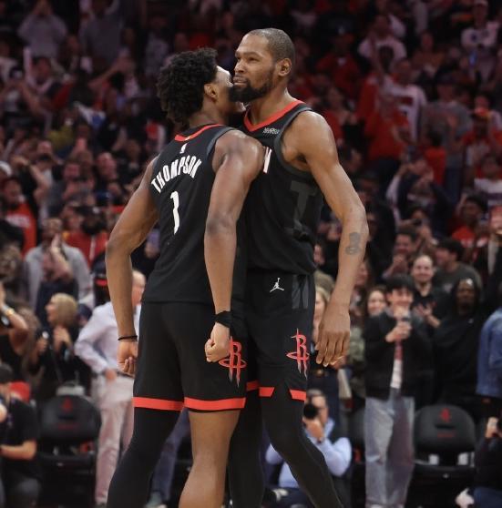 杜兰特最后7.6秒命中准绝杀球,帮助火箭击败对手,可以说,杜兰特凭一己之力带飞火箭!